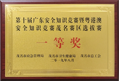 第十屆廣東安全知識(shí)競(jìng)賽暨粵港澳安全知識(shí)競(jìng)賽茂名賽區(qū)選拔賽一等獎(jiǎng)