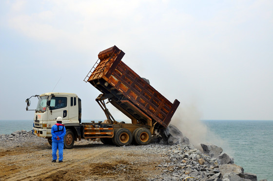10月13日,博賀新港區(qū)防波堤工程從東閣嶺開山取石拋填總量達(dá)到234車,約4500立方米,突破今年5月18日208車的最高峰值,創(chuàng)防波堤開工以來的歷史新高。