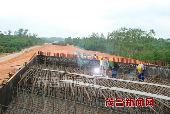 昨日上午,記者來到陽西新圩與電白望夫相接的施工現(xiàn)場,工人們有的在鋪大橋鋼筋,有的在焊接縫隙,有的在整理路基,施工現(xiàn)場熱火朝天。在望夫境內(nèi)放眼望去,路基面已基本成型。長達(dá)500多米的橫跨望夫河的特大橋,已用鋼板牢牢地筑好了施工通道,其旁邊有多臺(tái)沖樁機(jī)開動(dòng)沖錘施工。工人說,將抓緊好天氣時(shí)機(jī),加快推進(jìn)施工進(jìn)度。