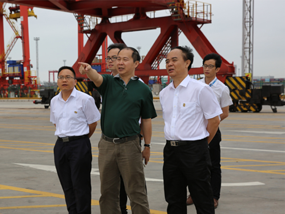 劉乃英董事長一行在湛江港集團(tuán)副總裁賴鐮的陪同下實(shí)地參觀了湛江港30萬噸級鐵礦石碼頭、30萬噸級航道、寶滿集裝箱碼頭,并詳細(xì)了解了湛江港碼頭規(guī)劃、建設(shè)、運(yùn)行及業(yè)務(wù)發(fā)展情況。