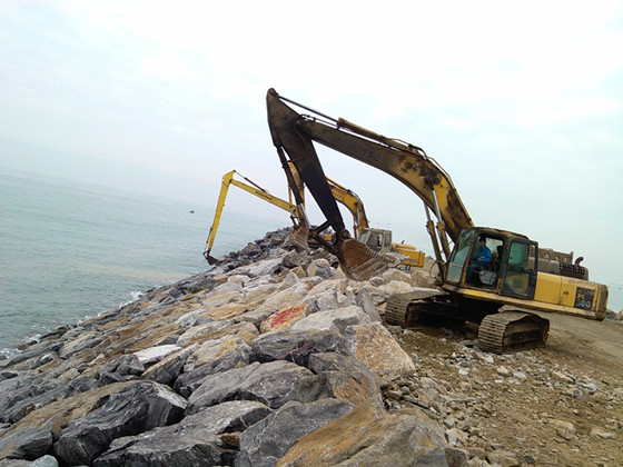 東防波堤外坡護(hù)面塊石施工