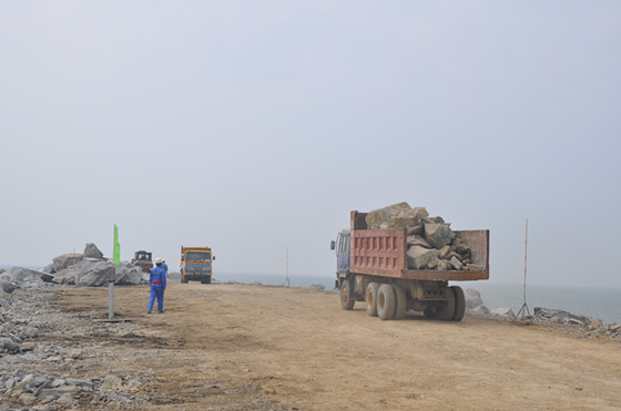 東防波堤堤心石推填