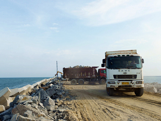 (西方波堤施工現(xiàn)場)
