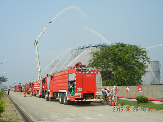 本次演練由茂名市消防部門與鑫龍公司牽頭組織,電白、茂港、特勤、紅旗、河?xùn)|、濱海6個現(xiàn)役消防中隊和茂石化、旦場鎮(zhèn)2個專職隊,共14臺消防車、50多名消防人員參加了演練。