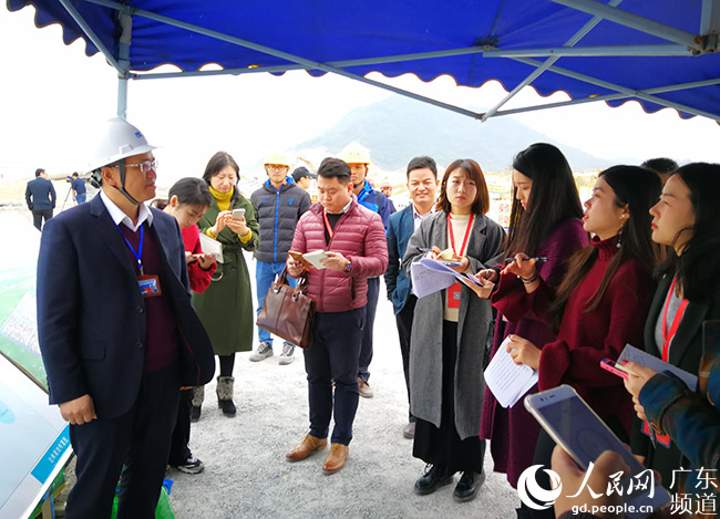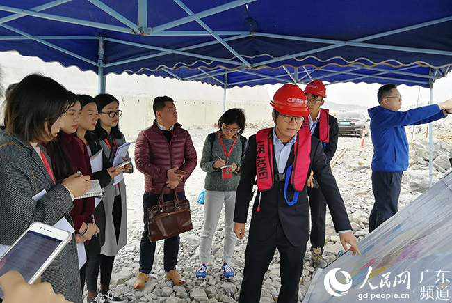 防波堤建設項目相關負責人向采風團介紹情況。劉遠忠攝
