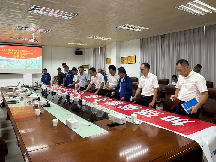 9月2號,茂名港博賀新港區(qū)30萬噸級原油碼頭工程召開了2024年“質量月”活動啟動儀式。會議由茂名港博賀新港區(qū)30萬噸級原油碼頭項目經理部(以下簡稱原油碼頭項目經理部)經理梁祖釗主持召開,原油碼頭項目經理部、中交一航局第二工程有限公司(以下簡稱施工單位)、廣州港工程管理有限公司(以下簡稱監(jiān)理單位)等參建單位參加了本次啟動儀式。