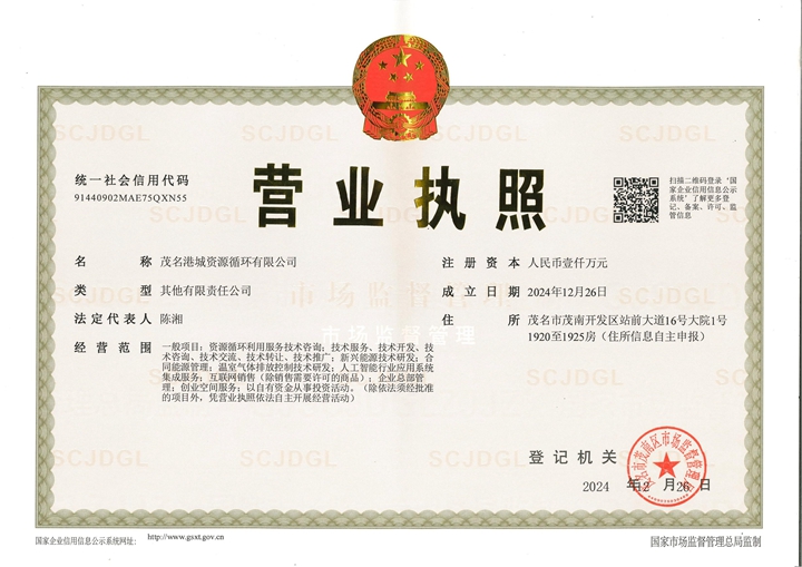 2024年12月26日,茂名港城資源循環(huán)有限公司正式成立,它由茂名港集團與茂名發(fā)展集團共同發(fā)起,標志著茂名資源循環(huán)利用產(chǎn)業(yè)將邁入了一個嶄新的發(fā)展階段。