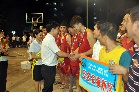 6月19日21:30,2014“建行杯”茂名港男子籃球邀請賽頒獎儀式在市文明南路銀苑籃球場舉行,茂名市副市長、茂名濱海新區(qū)黨工委書記楊潤貴,濱海新區(qū)副主任、茂名港集團(tuán)董事長胡軍,濱海新區(qū)副主任高莉,建行茂名分行行長米晉湘以及各參賽單位相關(guān)領(lǐng)導(dǎo)出席了閉幕式。